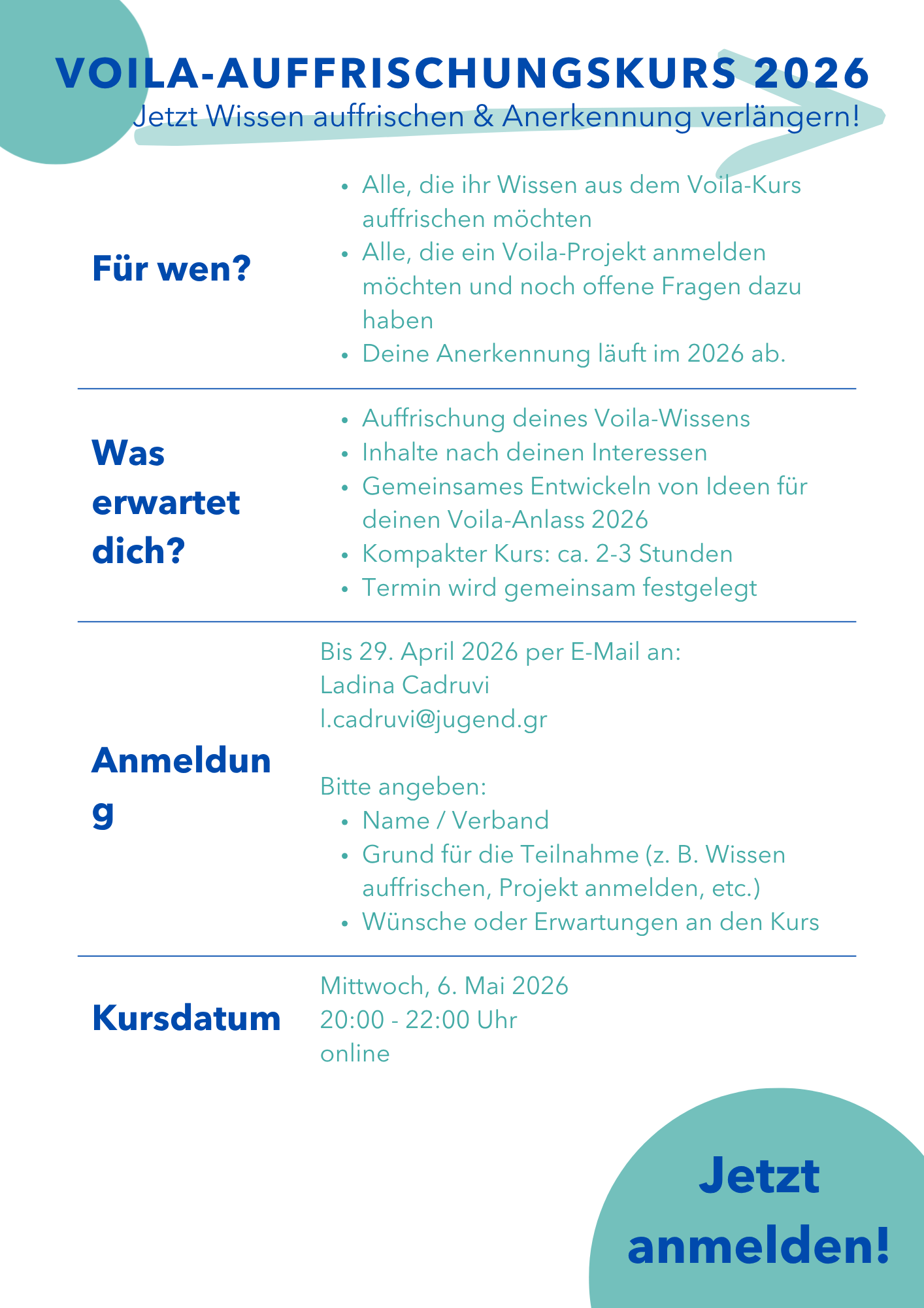 Voila-Auffrischungskurs 2026